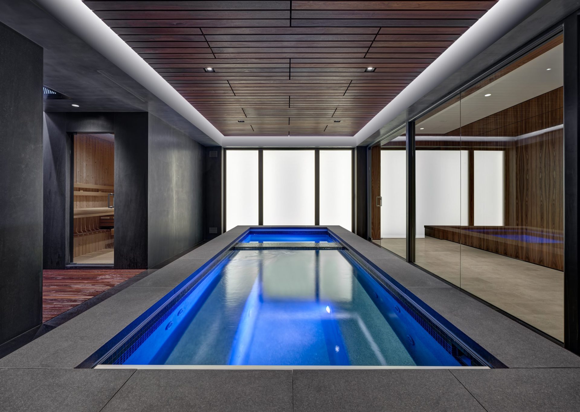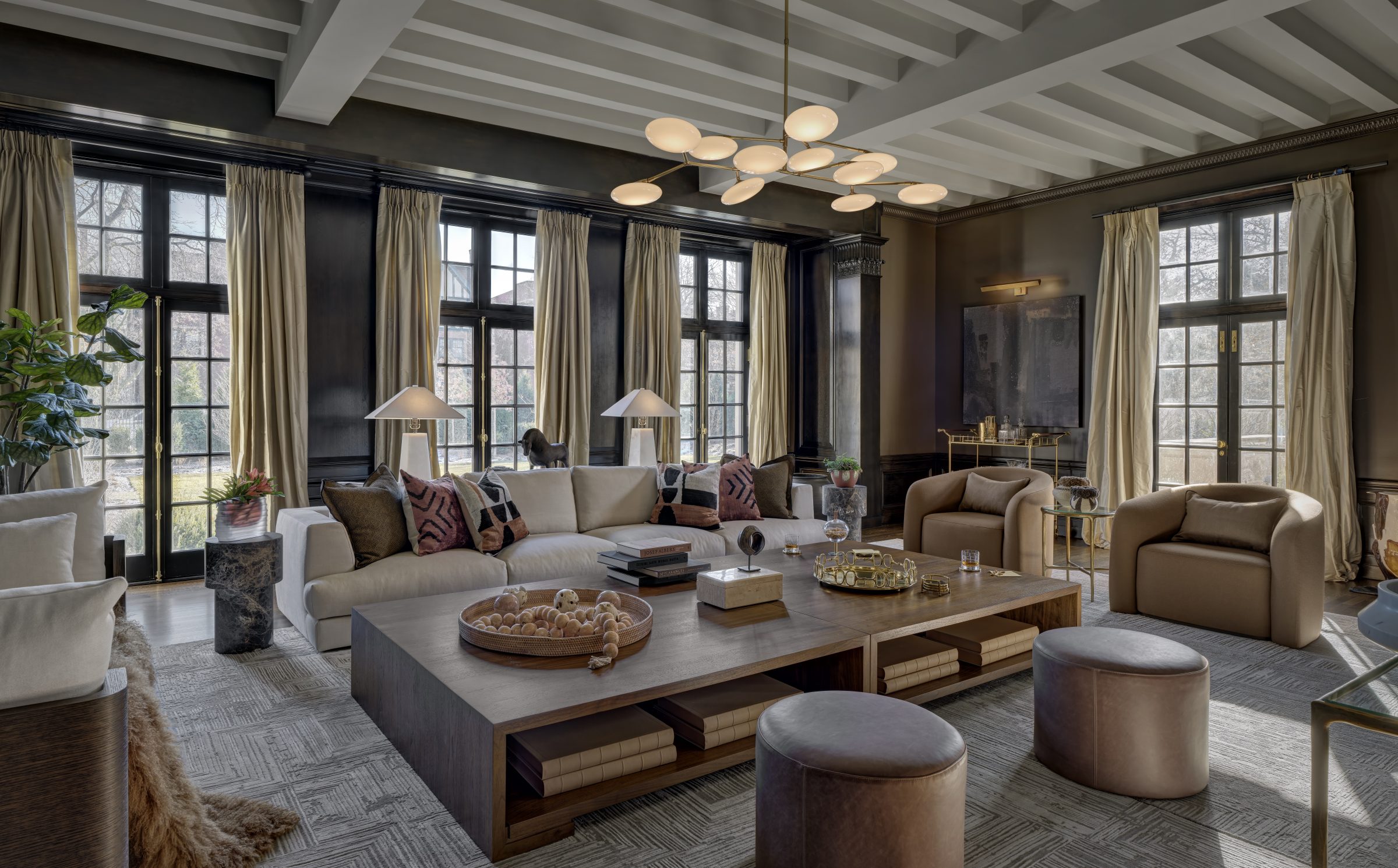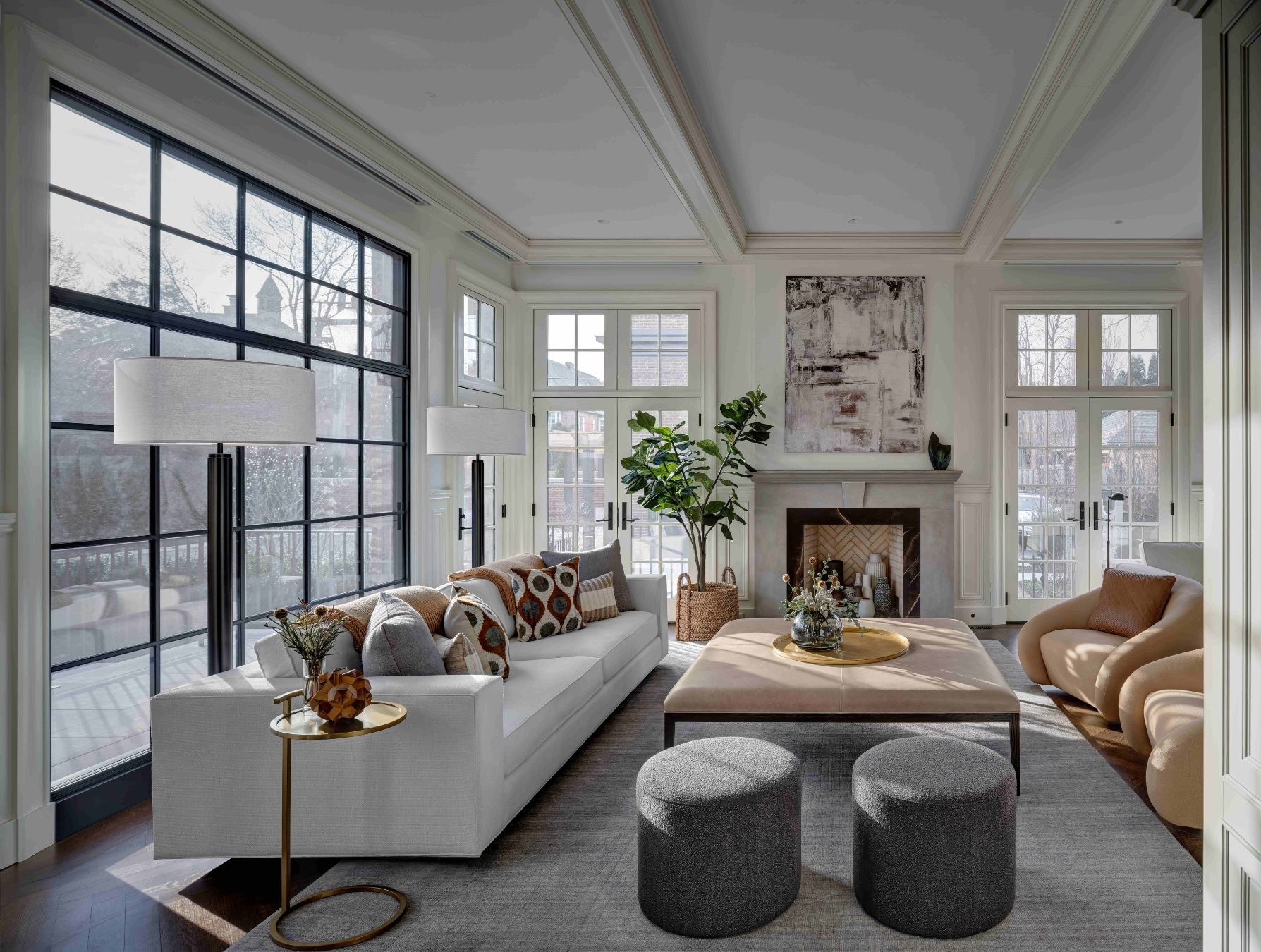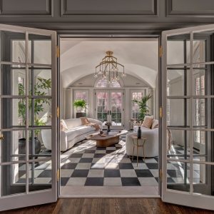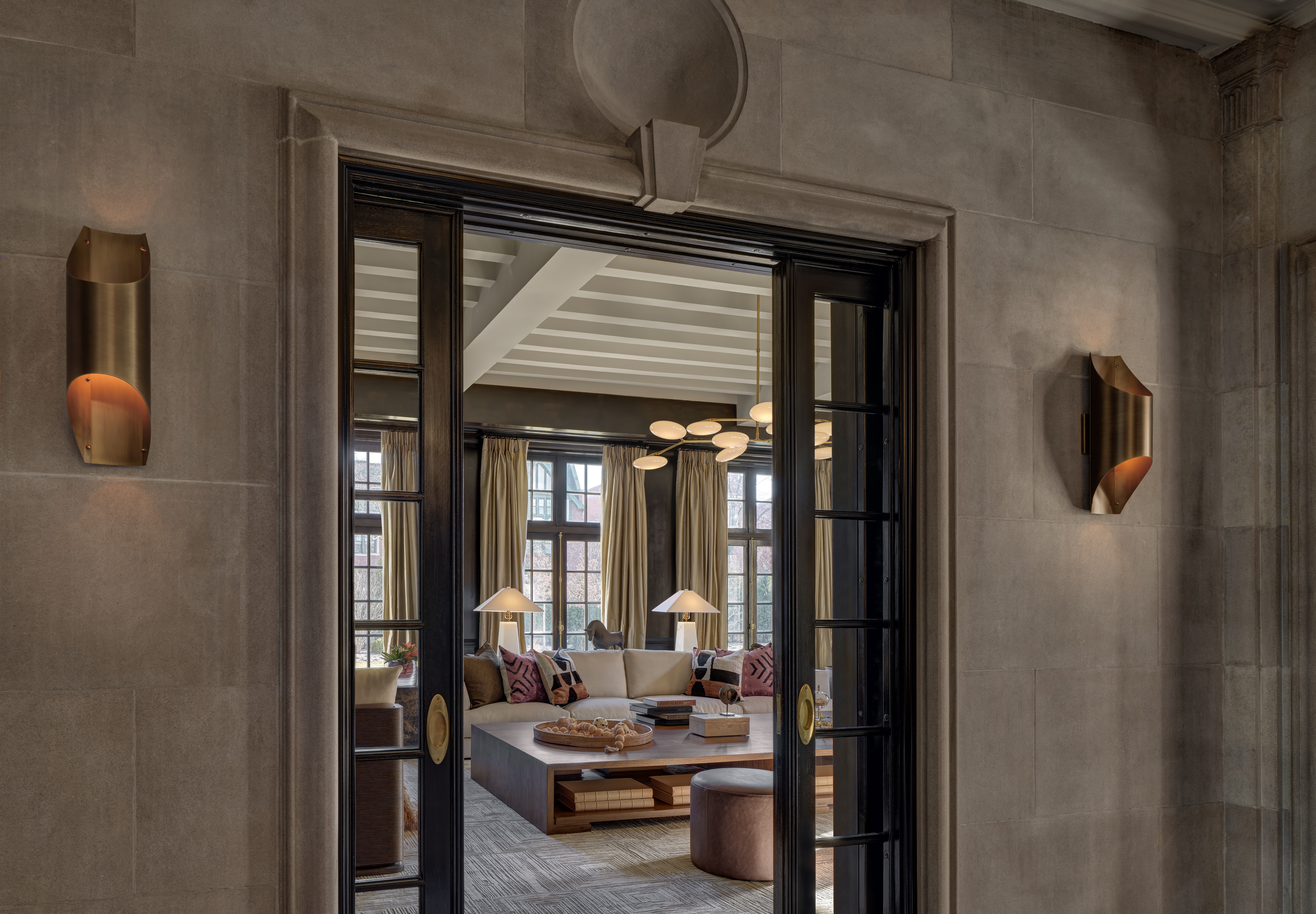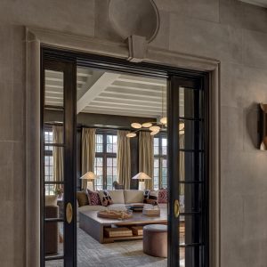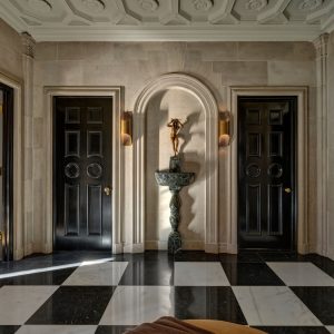 The mansion was reengineered with the removal of loadbearing masonry walls in the basement, and new structural steel posts and beams were installed to maximize square footage. With the lower level adapted, the existing floor was removed and lowered by two feet; and an expansive window wall with walkout access to the rear terrace was added. The newly transformed 3,800 sq. ft. lower level was redesigned with a spa, hot and cold plunge, workout room, game room, wine cellar, bar and fireplace. The mansion was originally designed for Morris Rosenwald, a financier and men’s clothing merchant to the original Sears, Roebuck & Co. who was the brother of the famous philanthropist Julius Rosenwald.
