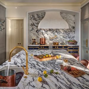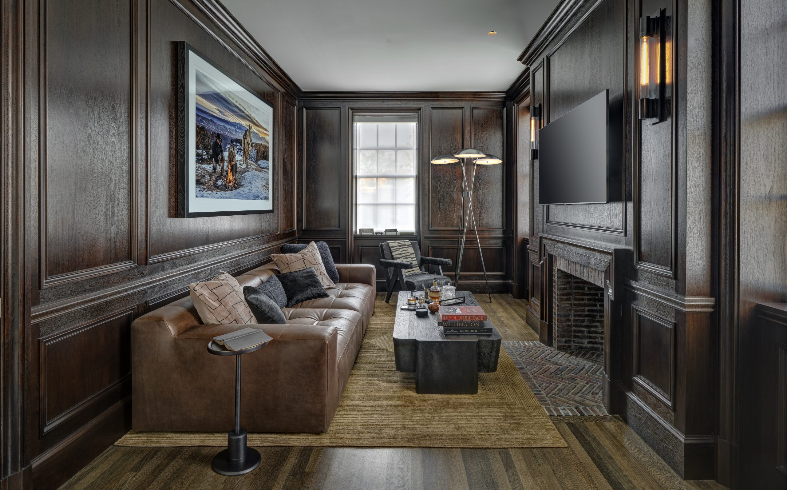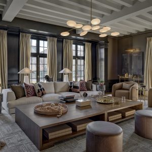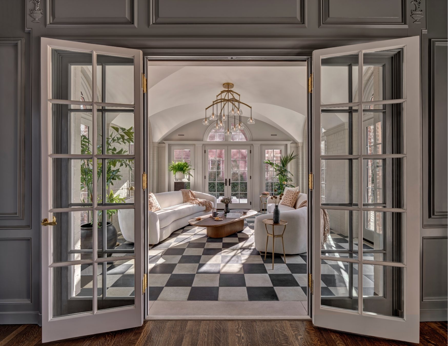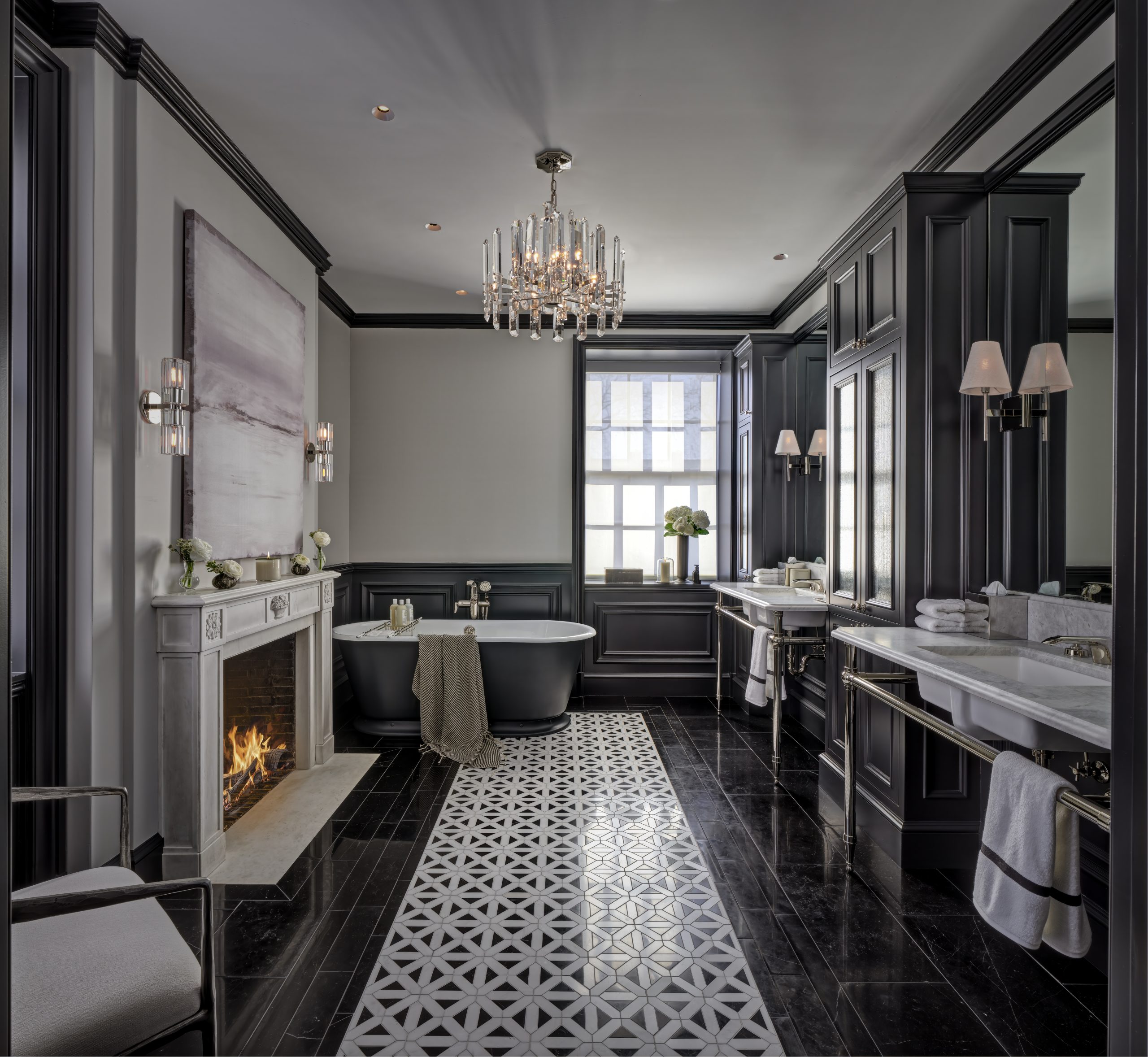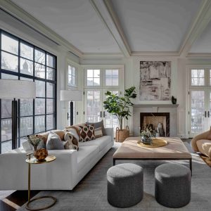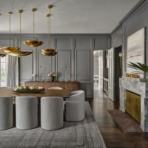 The mansion was reengineered with the removal of loadbearing masonry walls in the basement, and new structural steel posts and beams were installed to maximize square footage. With the lower level adapted, the existing floor was removed and lowered by two feet; and an expansive window wall with walkout access to the rear terrace was added. The newly transformed 3,800 sq. ft. lower level was redesigned with a spa, hot and cold plunge, workout room, game room, wine cellar, bar and fireplace. The mansion was originally designed for Morris Rosenwald, a financier and men’s clothing merchant to the original Sears, Roebuck & Co. who was the brother of the famous philanthropist Julius Rosenwald.