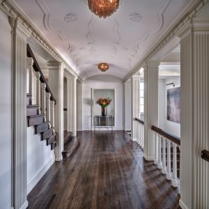 This 20-room mansion is beautifully situated on one of the largest residential lots in the city. Attentive efforts were placed on preserving the historic structure’s original architectural details. Restoration of the exterior focused on architectural limestone, masonry, copper and slate roofing, ornamental iron, and an ornate steel and glass entry canopy. The interior restoration concentrated on the original windows, hardware, millwork, limestone, marble, and plaster detailing. All the mechanical systems were updated with new HVAC, radiant heating, plumbing, electrical, lighting, low-volt, and security.